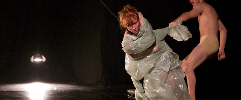 Marion Sparber, Claudia Voigt und Kilian Haselbeck beginnen ihre menschliche ReEntwicklung, frei von vorgegebenen Bewegungsmustern und Muttersprachen.