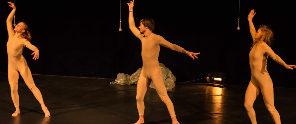 Marion Sparber, Claudia Voigt und Kilian Haselbeck beginnen ihre menschliche ReEntwicklung, frei von vorgegebenen Bewegungsmustern und Muttersprachen.